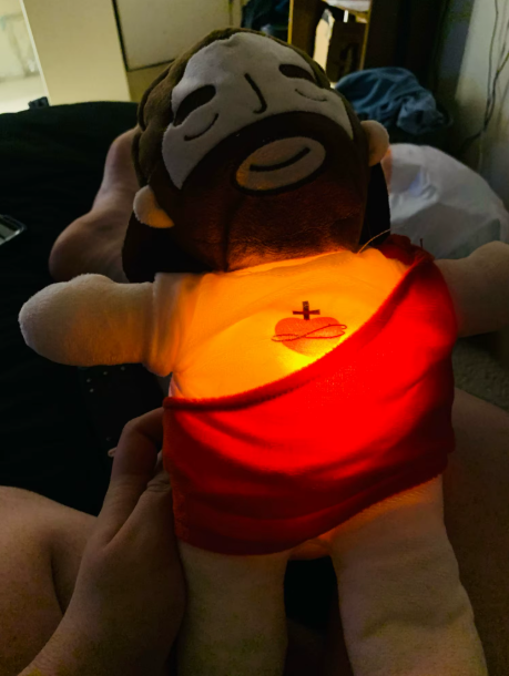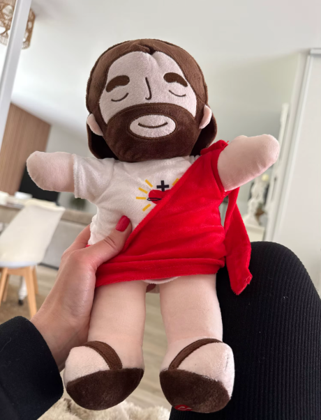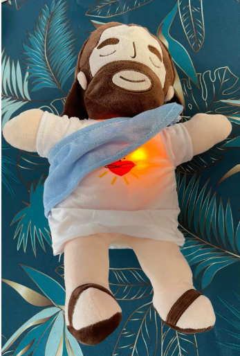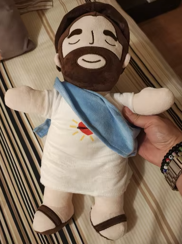No. The Breathing Jesus Plushie is a sacred devotional tool for adults experiencing anxiety and spiritual disconnect. It's crafted with premium materials and designed to sit alongside your Bible as a dignified companion for rest—not a plaything.